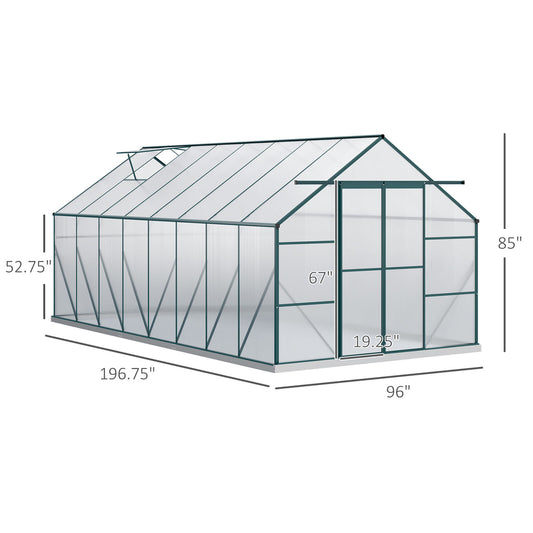 16' x 8' Polycarbonate Walk-in Garden Greenhouse Kit w/ Sliding Door, Clear