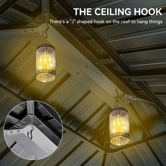11 x 13 Wood Framed Hardtop Gazebo with Metal Roof and Ceiling Hook